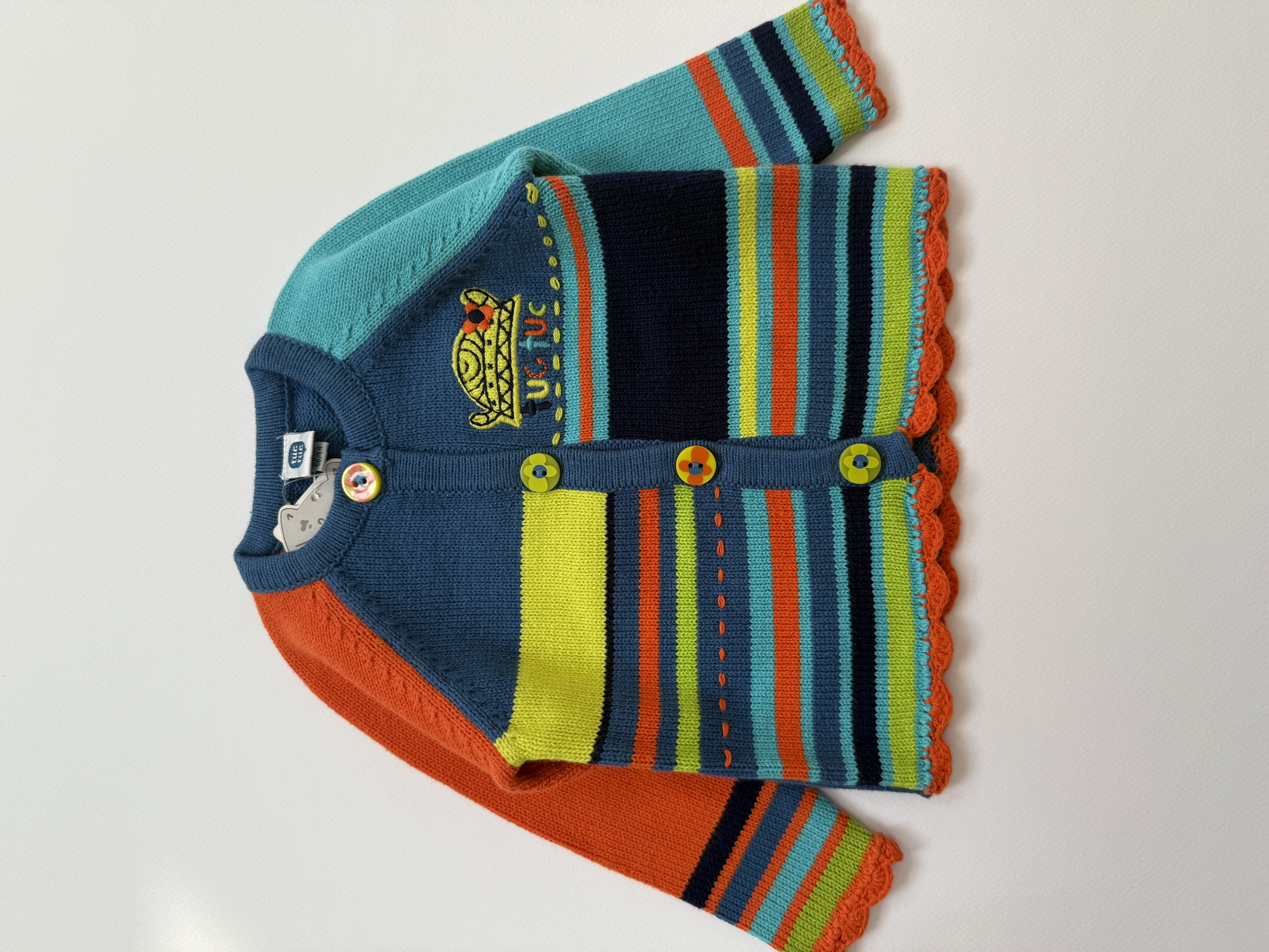 برند توک توک یکی از معتبرترین برندهای اتحادیه ی اروپا در کشور اسپانیاست که تولید لباس های نوزاد و کودک و نوجوان (از صفر تا ۱۴ سال) با کیفیت بالا و طراحی های جذاب را بر عهده دارد. پارچه های بکار برده شده در برند توک توک بسیار نرم و لطیف و بالای ۹۰ درصد و اکثرا ۱۰۰ درصد از الیاف پنبه می باشد که سلامت پوست کودک را تضمین می کند. تمامی لباس ها دارای شناسه و بارکد بوده که بارکد با سه رقم اول ۸۴۳ یا ۸۴۷ شروع شده و این نشان دهنده ی اصالت کالا از کشور مبدا برند یعنی کشور اسپانیا میباشد، که به سفارش اسپانیا در کشورهای مختلفی چون هند، بنگلادش و چین به دلیل ارزان بودن نیروی کارگر تولید شده اند، کلیه این اطلاعات در شناسنامه داخل لباس و نیز اتیکت کاغذی نوشته شده پس صددرصد از اورجینال بودن کالاها مطمئن باشید. لوگوی برند tuc tuc با طراحی های متنوع و جذاب روی طرح لباس چاپ یا متصل و نیز روی سرزیپ و دکمه ها حک شده است که این بازهم گواه اورجینال بودن کالا میباشد. لباس های دکمه خور، دارای دکمه زاپاس بوده که درون پاکت پلاستیکی به همراه اتیکت کاغذی به لباس متصل میباشد. دوخت درزها هم بیرون و هم داخل لباس بسیار مرتب و تمیز بوده و کوچکترین مشکلی ندارند. پارچه های بکار برده شده بسیار رنگ های شاد و زیبایی دارند که به سلامت روان کودک کمک کرده و کودک را شاد و مهیج می کند. طراحی لباس ها بقدری زیبا و کم نظیر است که خاص توکتوک بوده و در هیچ یک از برندهای اروپایی تکرار نشده است. از لحاظ قیمت همواره سعی کردیم محصولات را با کمترین قیمت یعنی نصف و حتی یک سوم قیمت سایر همکاران ارائه دهیم، که شما با یک سرچ کوچک در سایت متوجه این تفاوت قیمت ها خواهید شد. با توجه به تحریم ها و مشکلات اخیر کشور این برند در ایران بسیار کمیاب بوده و ما به سختی محصولات را شارژ و در اختیارتان قرار می دهیم اما اگر استقبال و حمایت شما عزیزان ازین وب سایت همراه ما باشد قول میدهیم که از پس همه ی سختی ها برآمده و همواره ورژن های جدید تهیه گردد. از همکاری شما عزیزان با توک توک پلنت بینهایت خوشحال و سپاسگزارم🌱