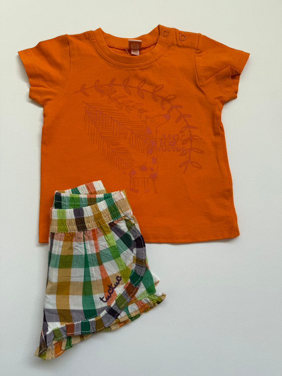 ست تیشرت شورتک دخترانه از برند توک توک اسپانیا، اورجینال، بارکددار، جنس نخ پنبه ای فوق العاده سبک و لطیف و خنک، کودک احساس آرامش و راحتی دارد، تیشرت دو دکمه در سرشانه دارد و شورتک کمر کشی و جنس حالت تترون، قشنگی های این ست با عکس قابل وصف نیست از نزدیک باید ببینیدچه طرح و جنسی داره 🍊🍑