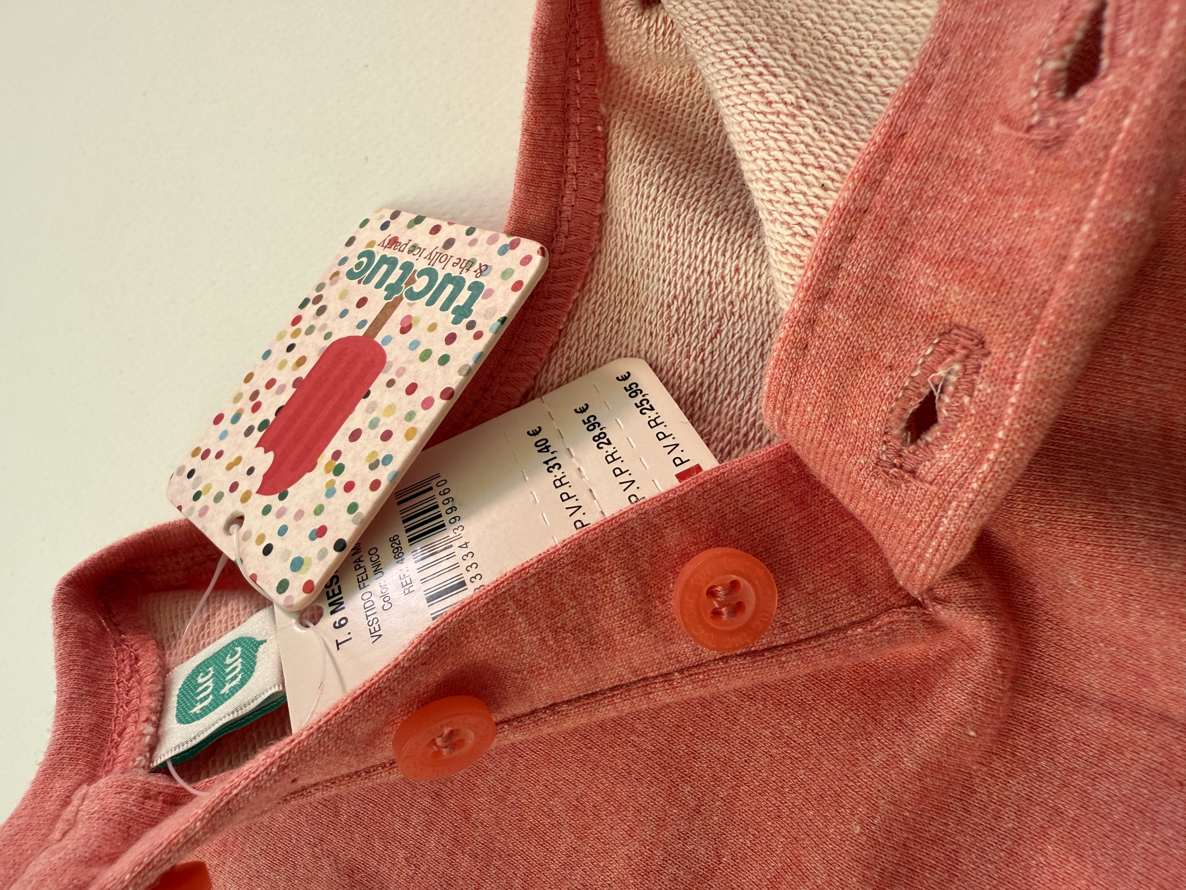 تونیک دورس دو نخ دخترانه برند توك توك اسپانيا اورجينال و باركددار، جنس صددرصد نخ پنبه، لطيف، سبك مناسب فصل سرد و داراي دكمه زاپاس، نام برند روي دكمه ها حك شده است.