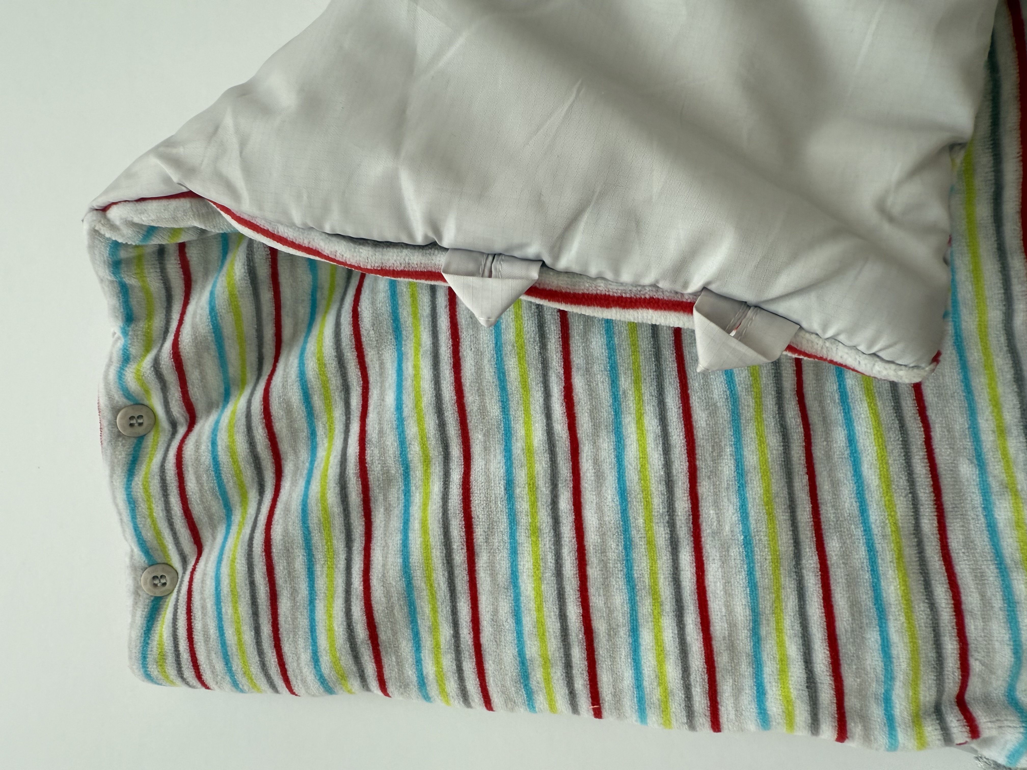 و بعدش میتونید به عنوان تشک هم استفاده کنید و قسمت بالاش مثل کلاه طراحی شده و با دکمه بسته میشه تا سر کوچولوش گرم و راحت بمونه 🤍جنس داخل لطیف و نخ پنبه ای جهت پوست حساس نوزاد، نام برند در جاهای مختلف از جمله لگو روی قنداق و سر زیپ ها حک شده، مناسب بیمارستان، کالسکه و بیرون رفتن 🍂