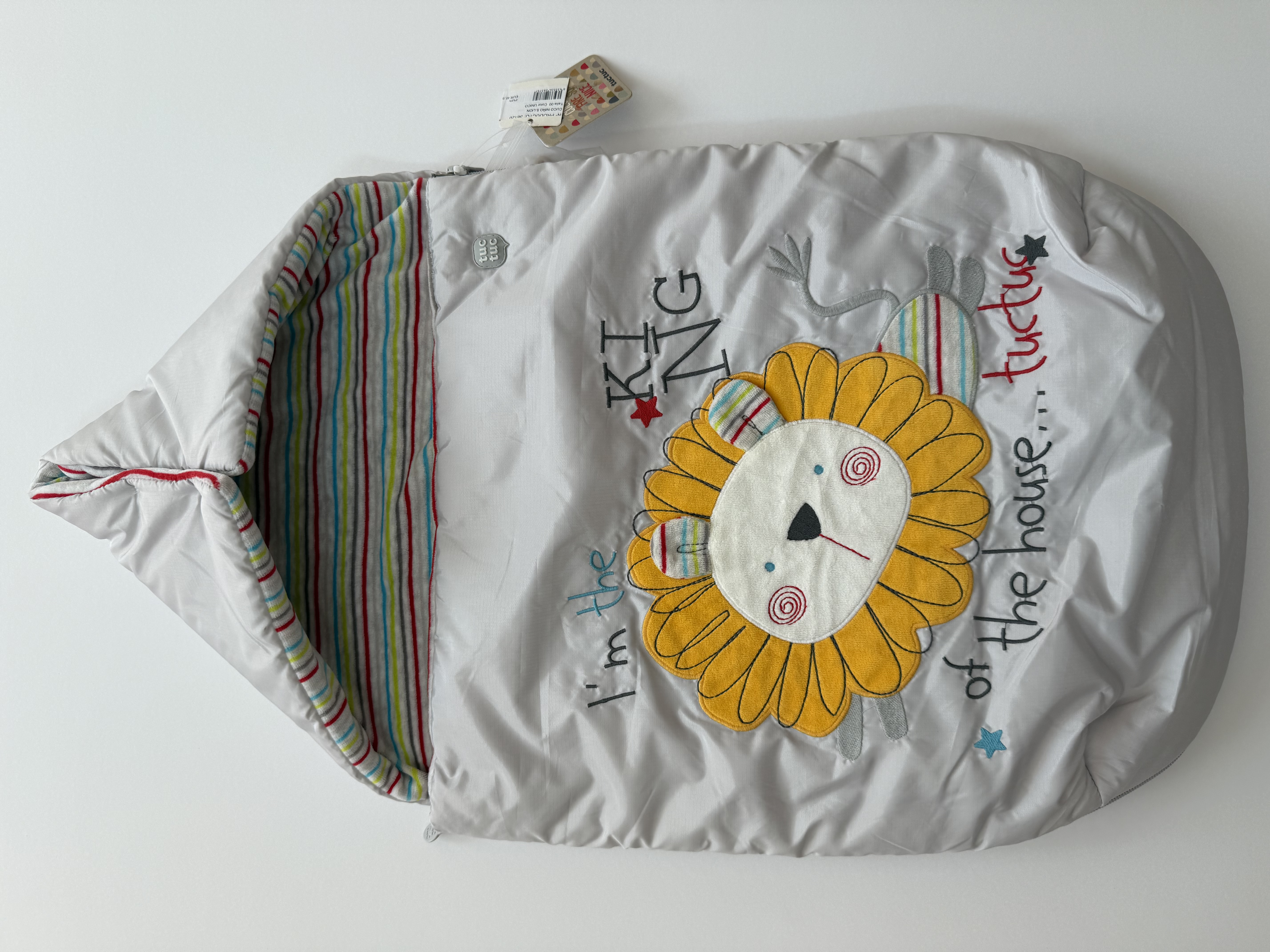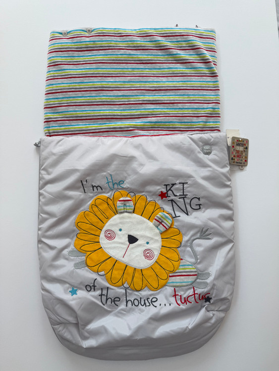 قنداق فرنگی یونیسکس با طرح شیر بامزه 🦁 ، از برند توک توک اسپانیا، اورجینال و بارکددار، رنگ خنثی هم مناسب آقا پسرا 👶🏻 هم دلبر برای دختر کوچولوها 👶🏻🎀، زیپ دو طرفه و کامل باز و جدا میشه