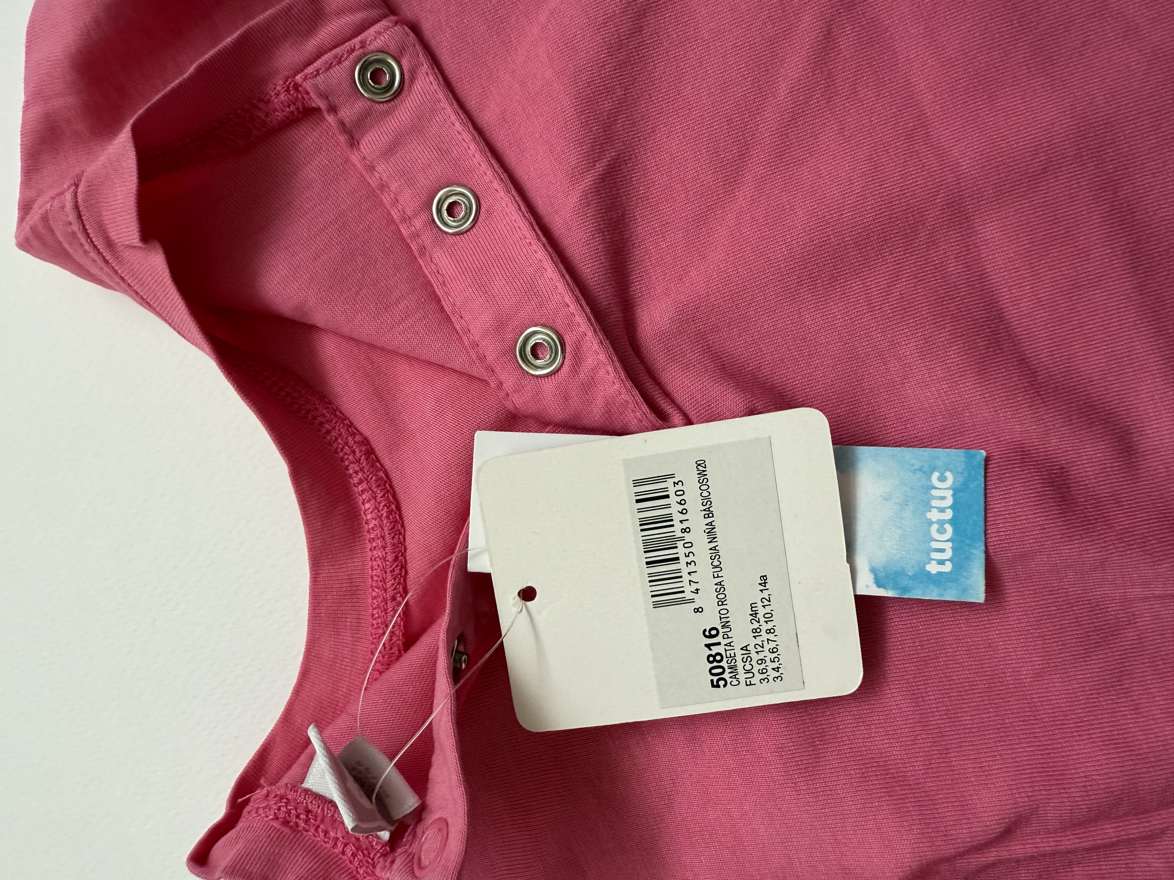 تیشرت آستین بلند دخترانه برند توک توک اسپانیا اورجینال بارکددار رنگ صورتی جنس صد درصد نخ پنبه بسیار لطیف و خنک مناسب فصول گرم برش زیبا و خاص با دو چاک قشنگ، دارای جیب فانتزی و قواره دار مناسب تا یکسال، پشت یقه سه عدد دکمه فشاری فلزی بکار رفته که راحت تر پوشیده بشه