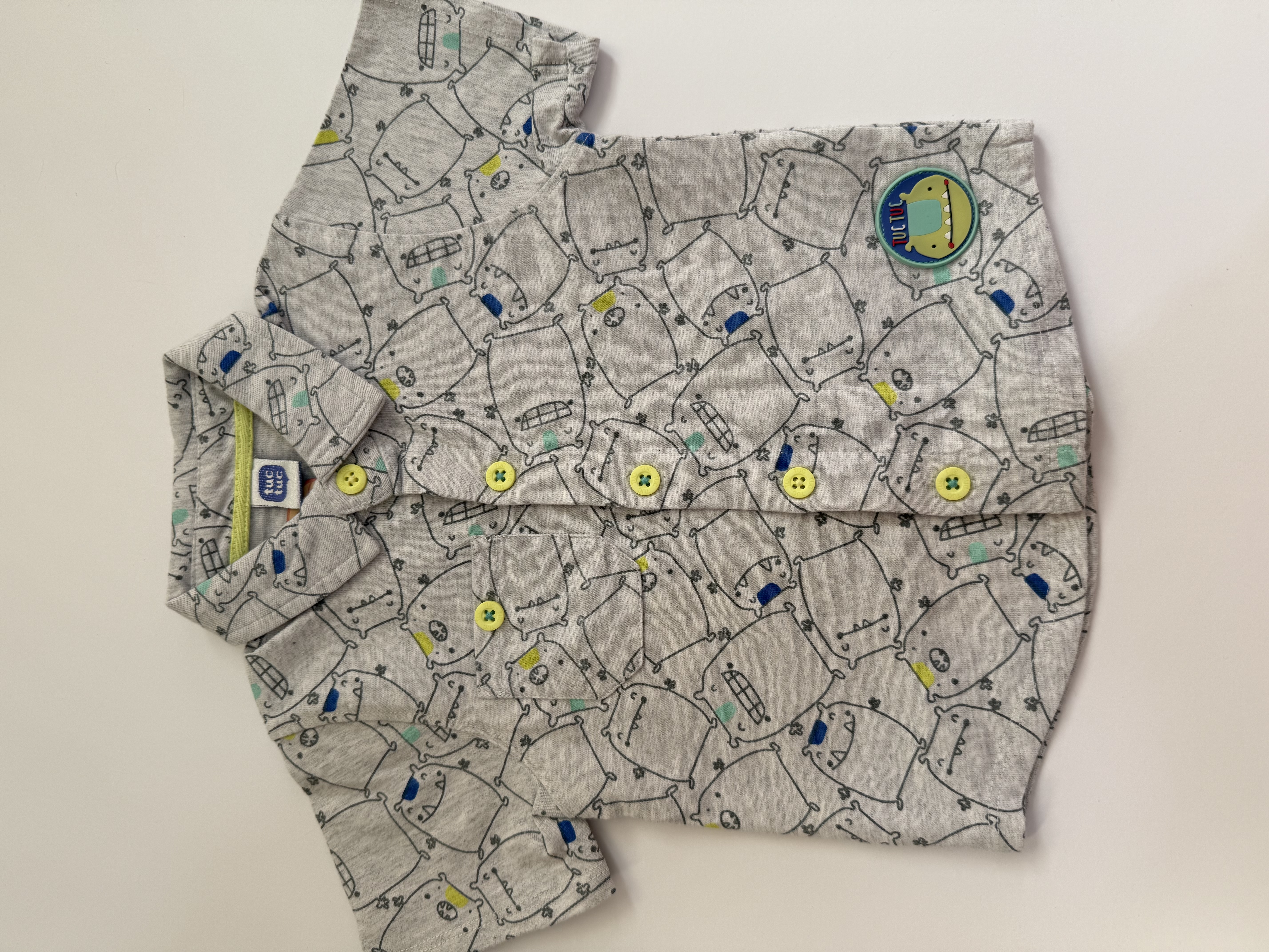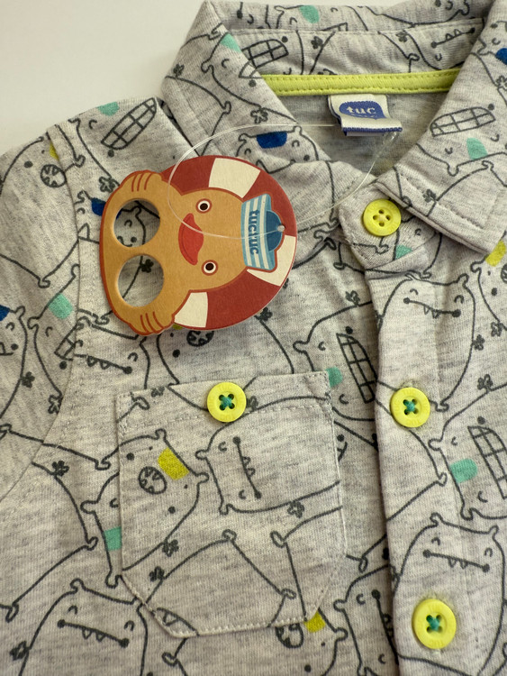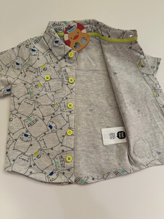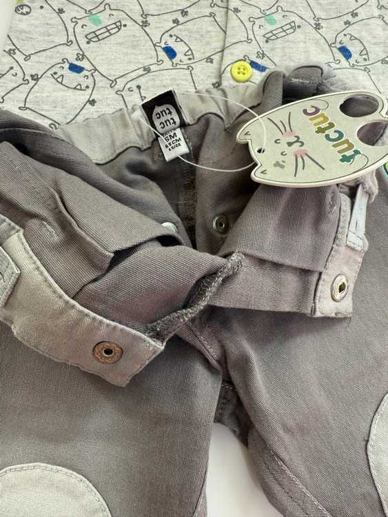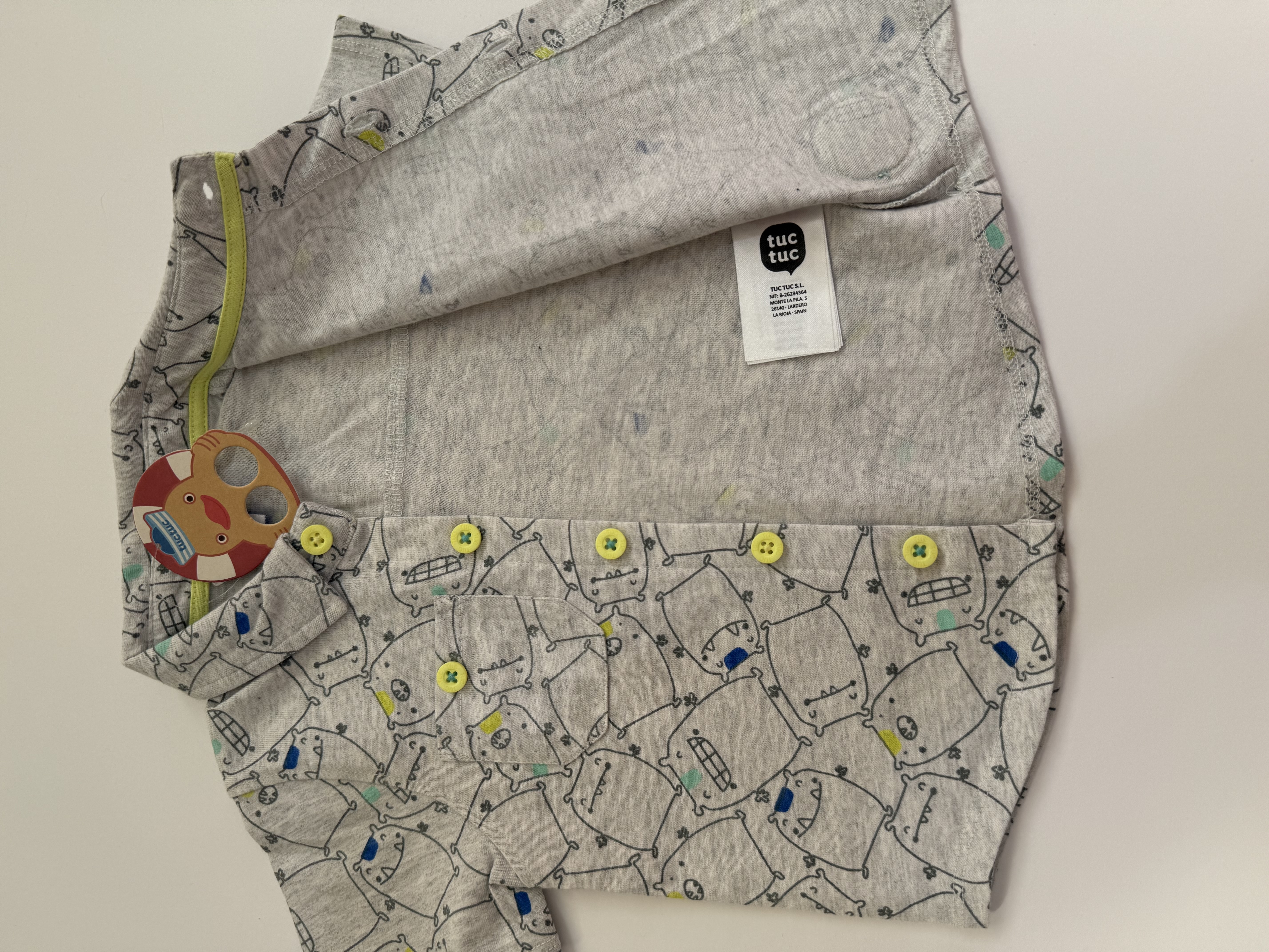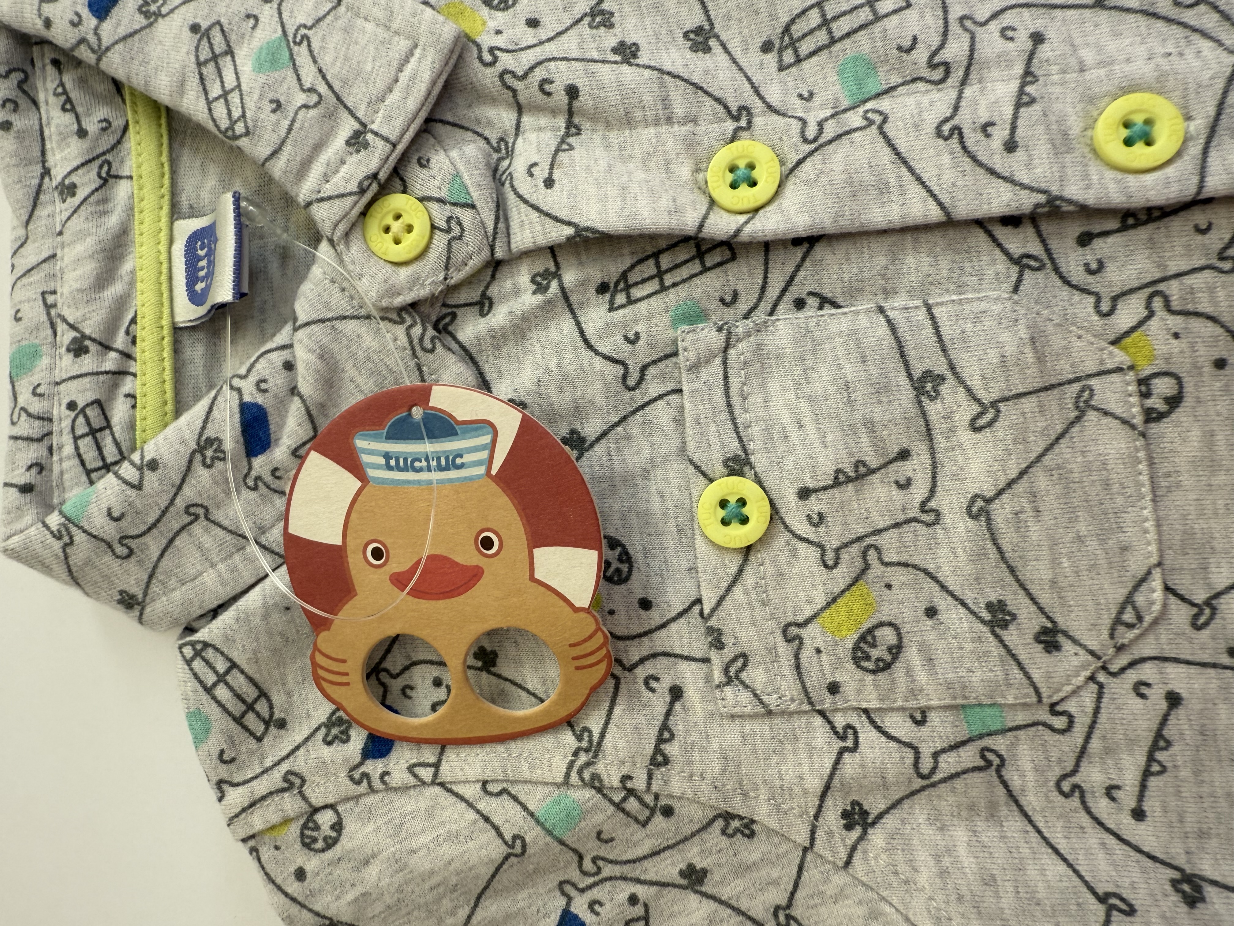 ست تیشرت آستین کوتاه و شلوار پسرانه، اورجینال بارکددار، برند توک توک اسپانیا، جنس تیشرت ۱۰۰٪ نخ پنبه، نام برند روی دکمه ها حک شده، طرح و جنس تیشرت فوق العاده لطیف و طرحش خاص و کمیابه، جنس شلوار کتان ۹۸٪ نخ و ۲٪ کش، هم کشی هم سبک جهت راحتی کودک، مناسب بیرون و داخل، کمر شلوار قابل تنظیم و دارای دکمه ی زاپاس، در کل خیلی ست شیکیه.