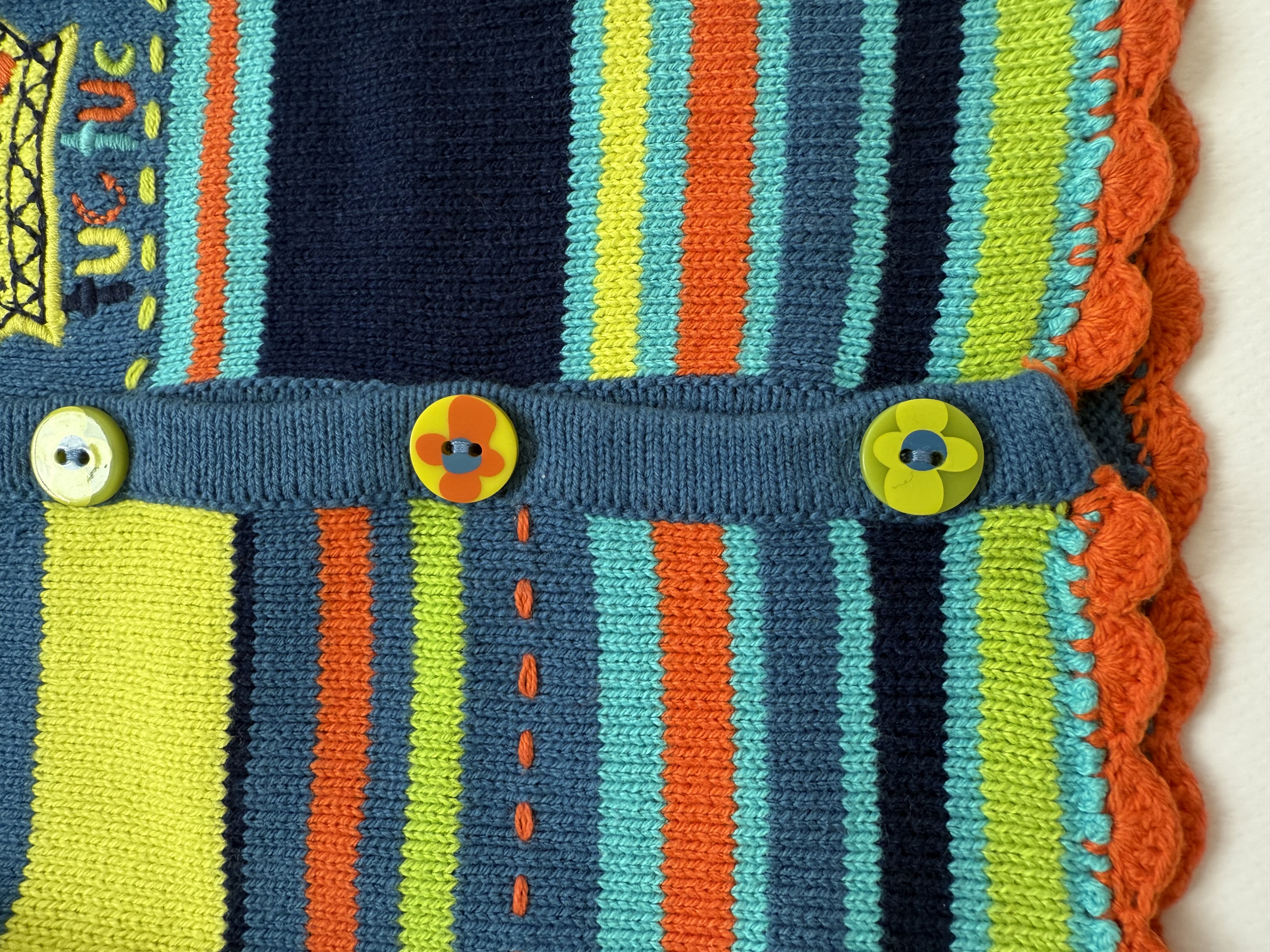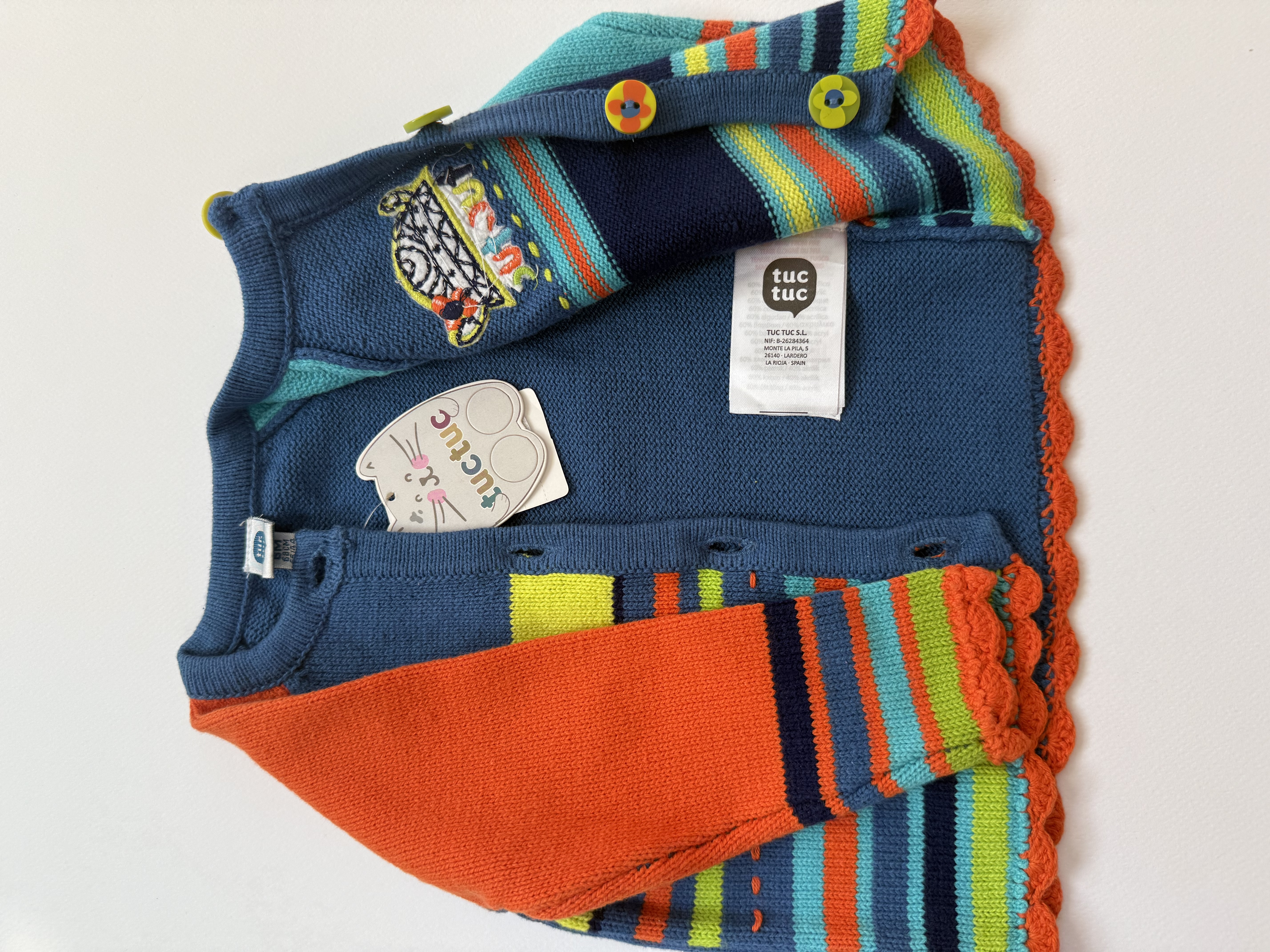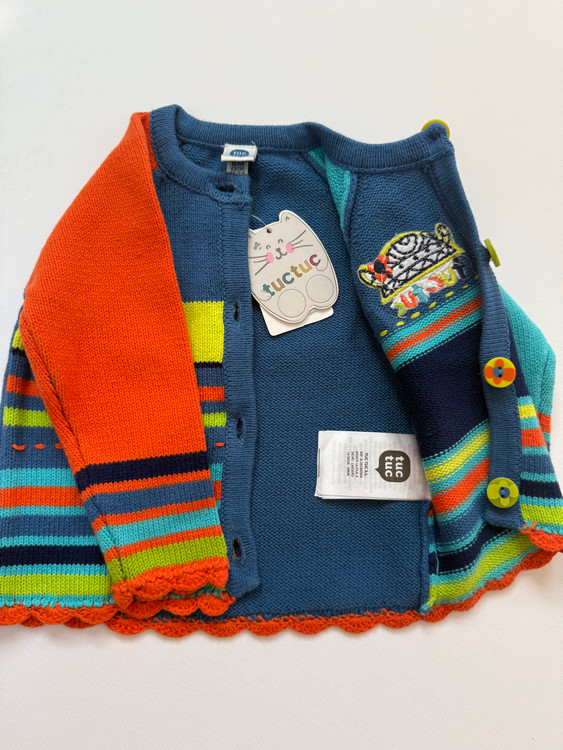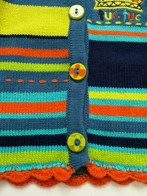 سویشرت بافت نوزادی دخترانه، از برند توک توک اسپانیا، اورجینال و بارکددار، جلوی لباس دکمه خور، دکمه های طرح گل بسیار زیبا، بافت با کیفیت و قواره دار، رنگ های شاد و مهیج برای کودک