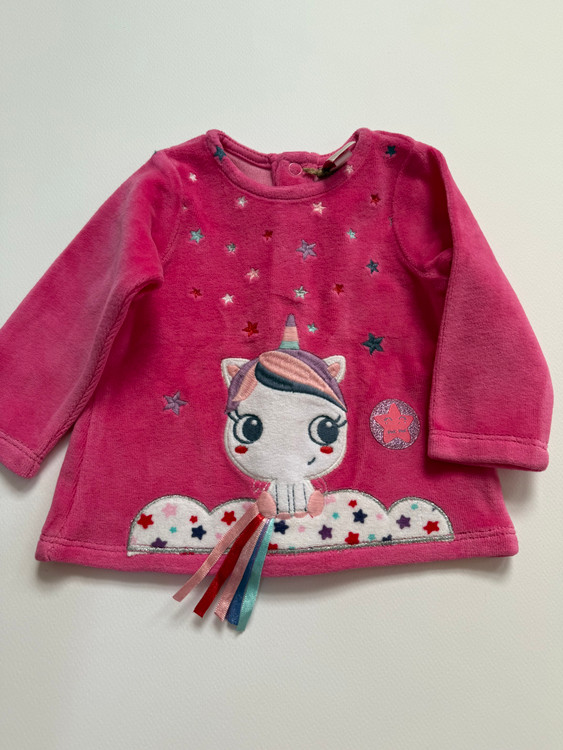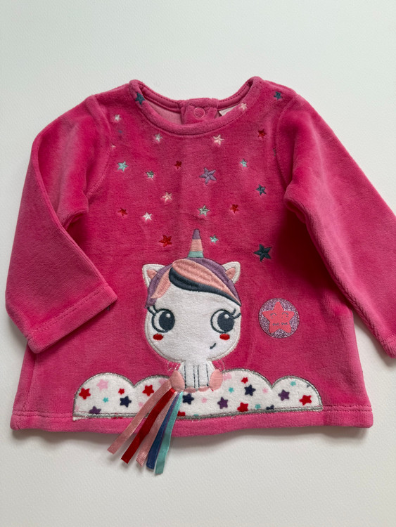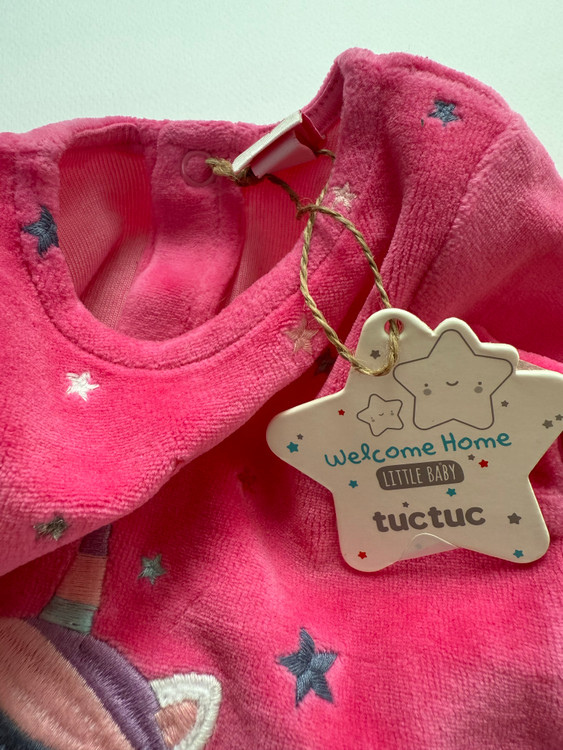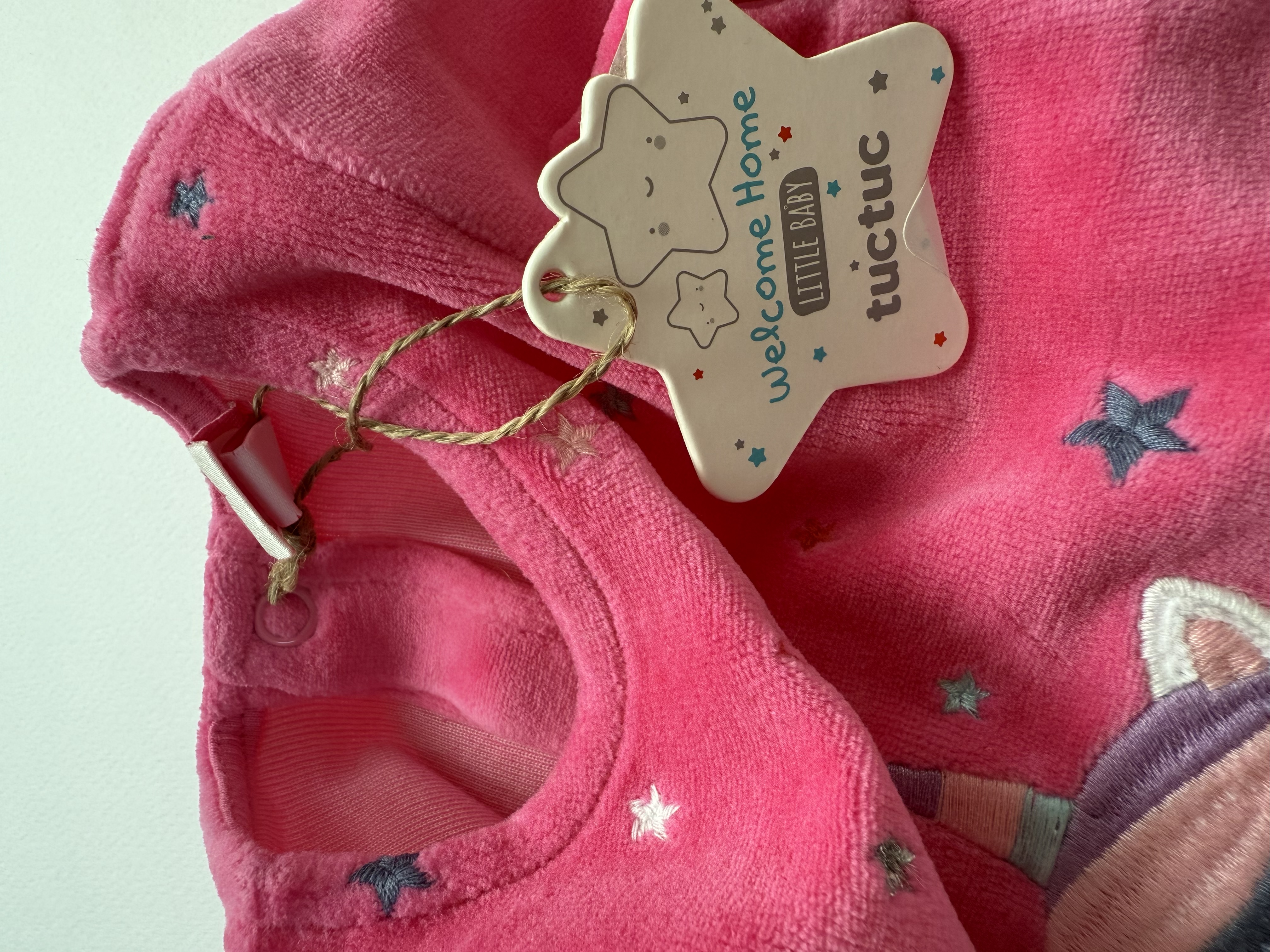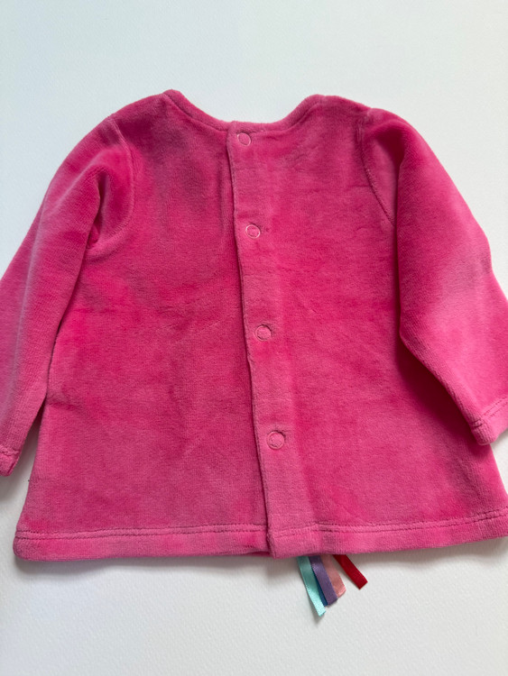 تیشرت آستین بلند یا تونیک نوزادی، جنس مخملی لطیف نخ پنبه ای، صورتی خوشرنگ، اورجینال اسپانیایی بارکددار ، پشت لباس ۴ عدد دکمه فشاری فلزی بکار رفته💖💞
