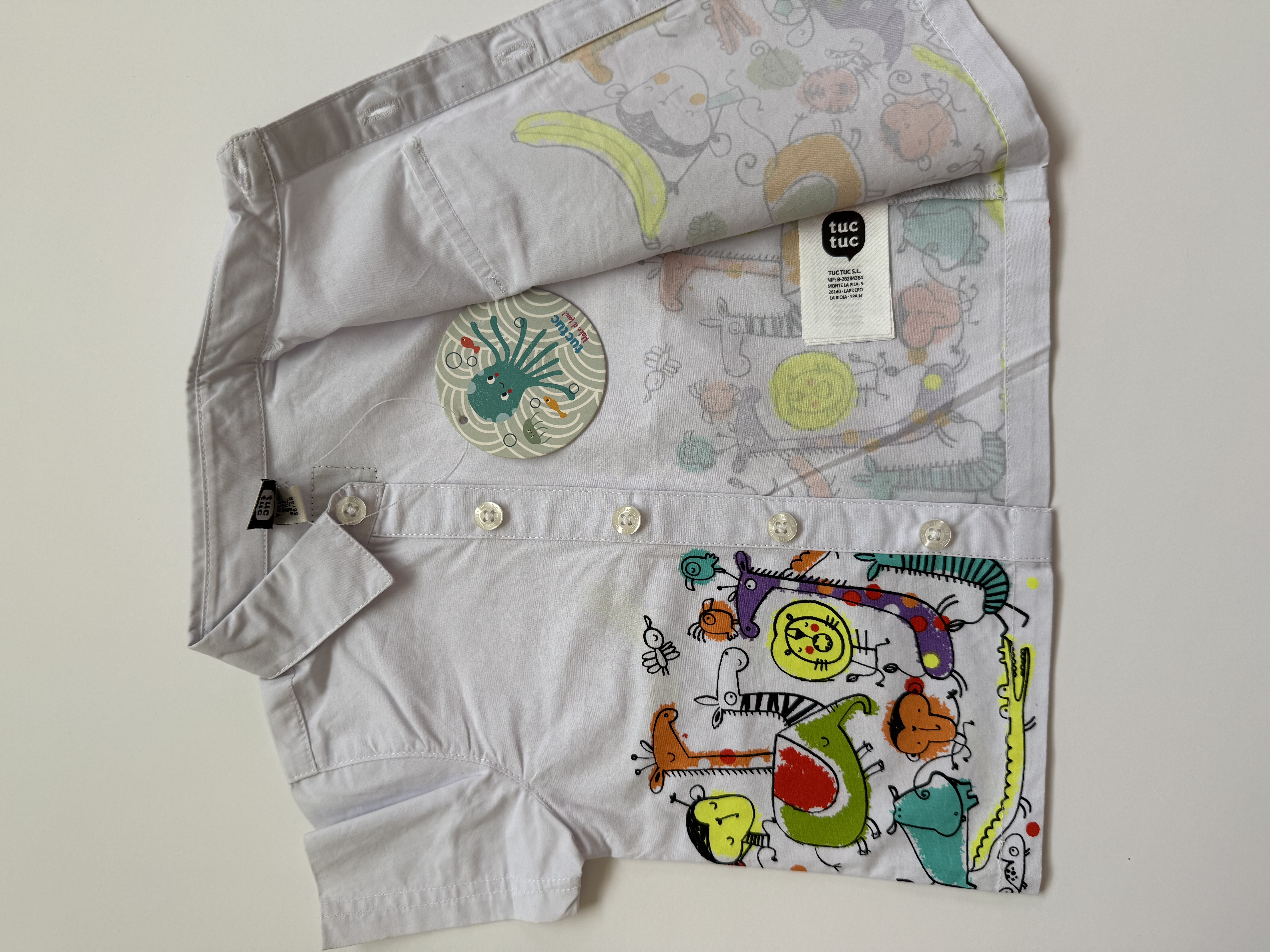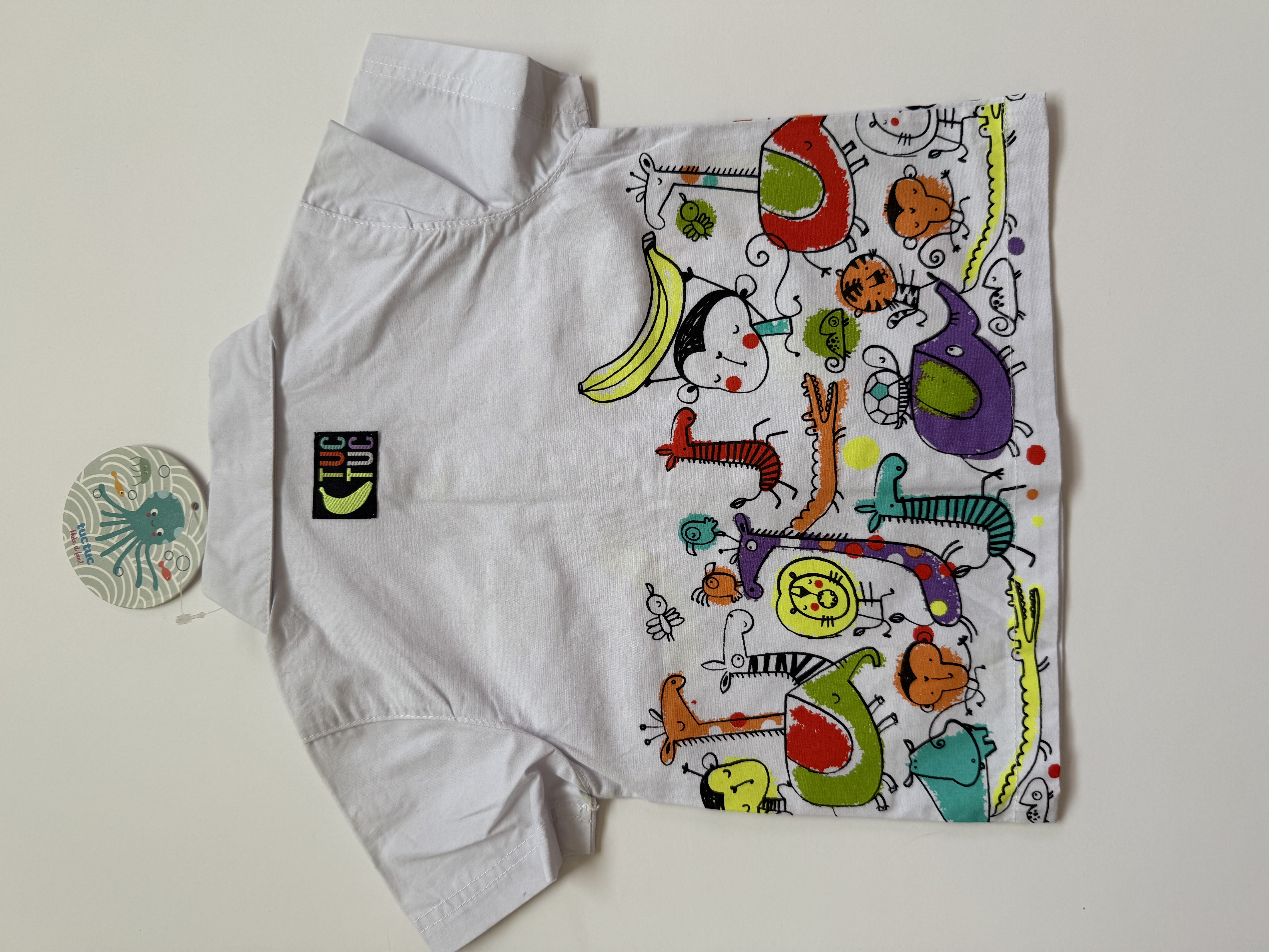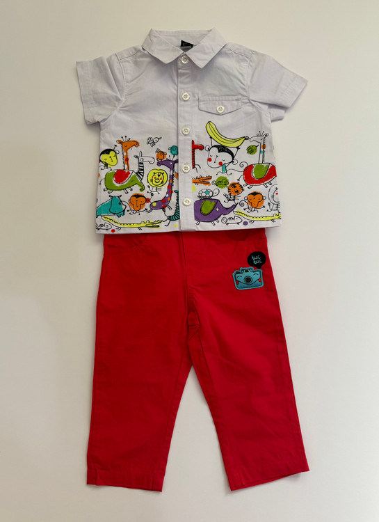 ست تیشرت شلوار پسرانه برند توک توک، بارکددار، اورجینال اسپانیایی، جنس تیشرت حالت تترون و جنس شلوار کتان کاغذی هردو ۱۰۰٪ نخ پنبه ی لطیف و خنک، بسیار سبک و راحت، نام برند روی دکمه ها حک شده و شلوار دارای دکمه ی زاپاس، دارای طرح و رنگ های شاد و مهیج برای کودک 🏳️🌈🐣
